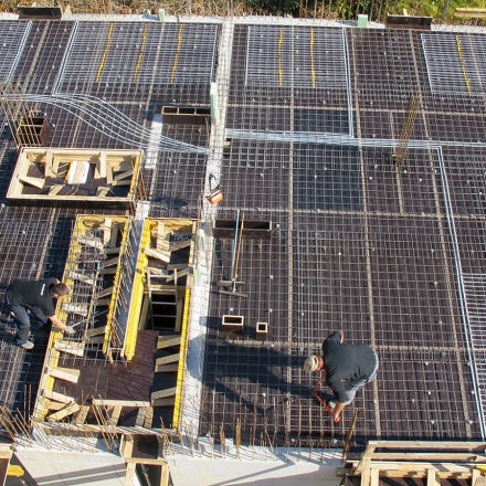 The system is purely passive and uses no technical refrigeration. Heat is dissipated directly into the cooling reservoirs of the foundation soil. Through activation of ground / foundation collectors (120m²) the reinforced concrete floors in the living areas can be kept comfortable at stable, moderate temperatures, even during particularly hot months.